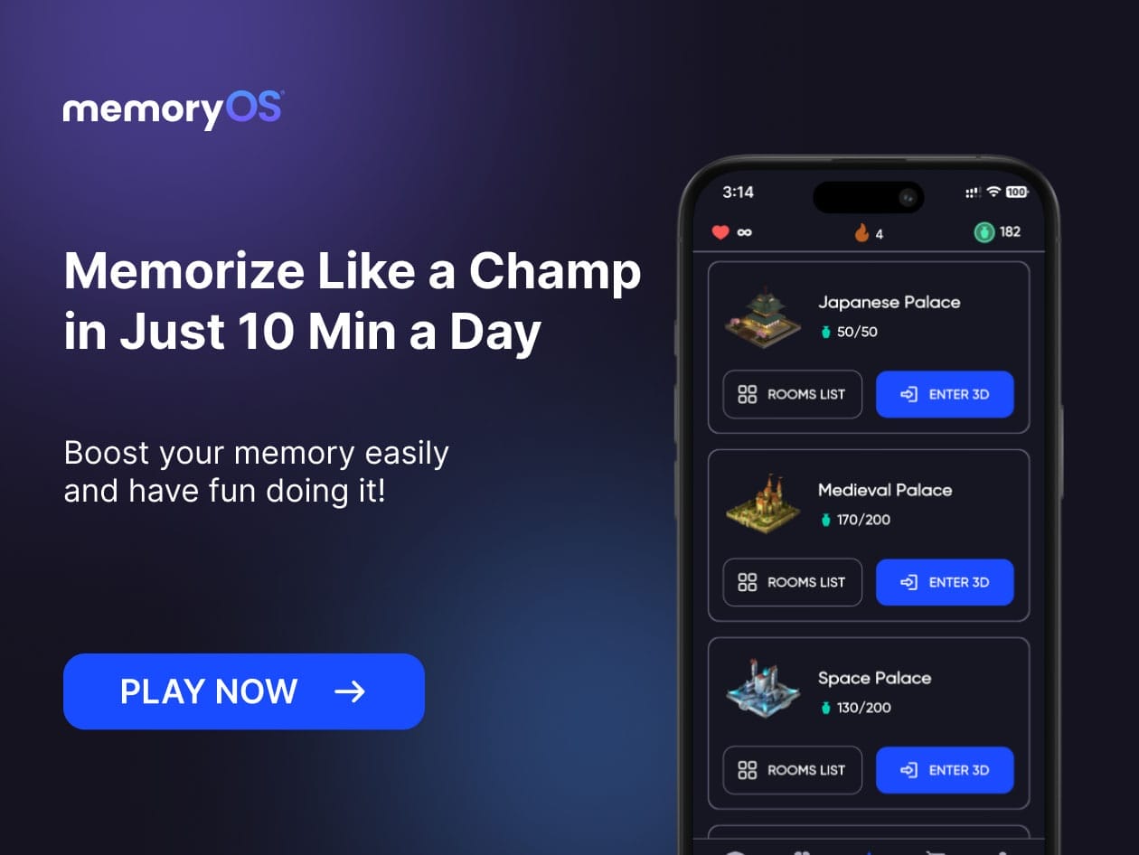 It has many names: The Memory Palace, Method of Loci, The Mind Palace… But whatever you call it, it works wonders! This incredible, scientifically proven technique has been used for over 2000 years and allows anyone to memorize as many things as they like. The Mind Palace technique helps your brain keep information significantly better and increases the remembering capability by many times — in essence, it transforms how we encode, store, and recall data.