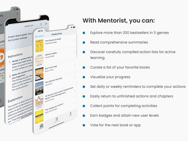 Mentorist summarizes bestsellers in business, leadership, and personal development. But most importantly, it presents you with actionable steps to apply the knowledge where you need it most. From overcoming business challenges by asking yourself the right questions to enhancing your focus with powerful mindfulness exercises–with Mentorist you’ll see results.