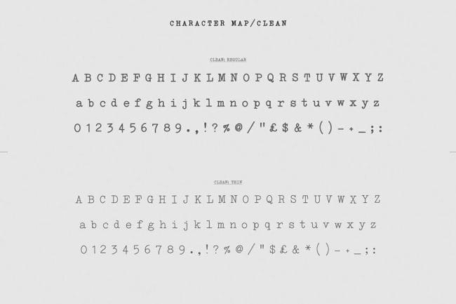There are few fonts that are more versatile than typewriter fonts. From modern minimal branding to dark and gritty posters, a typewriter font can effectively do it all. So, say hello to Merchant Ledger! Developed from authentic typewriter hammer keys, this typeface comes in two styles (clean and rough), each in two weights (regular and thin). The result is a small family of remarkable versatility.