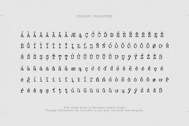 By capturing the subtle nuances and imperfections of the hammer keys, Merchant Ledger retains all the honesty of the real machine; slightly misaligned characters and baselines create authenticity without sacrificing legibility and functionality.