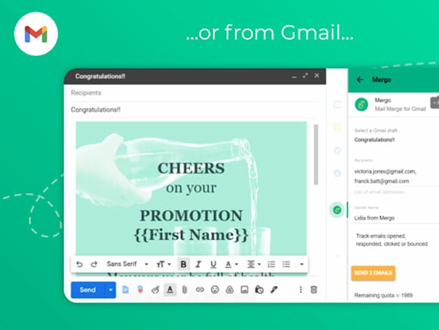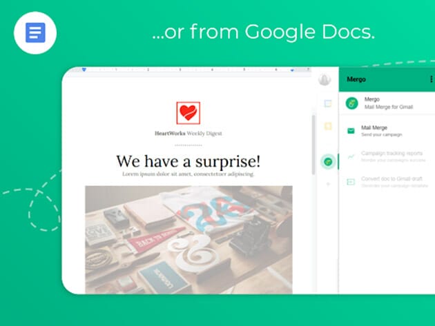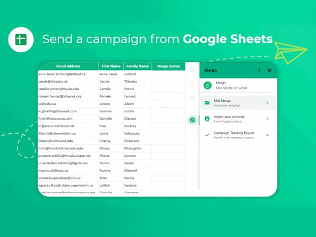 Mergo is the 1st email campaign tool built on the new generation of Google add-ons that automates the sending of emails using Gmail, Google Sheets, and Docs. Mergo can help you send: lead generation campaigns, school report cards (with personalized attachments), marketing newsletters, event invitations, promotional offers, email greetings, wedding invitations, and more! Mergo is available to all Google users. User-friendly and no coding skills required. Try Mergo 100% Free on your first campaign. Learn more here.