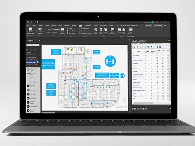 • Floor plans: Design a social distancing workspace, retail store layout, new home, and more with accurate, scalable templates & tools