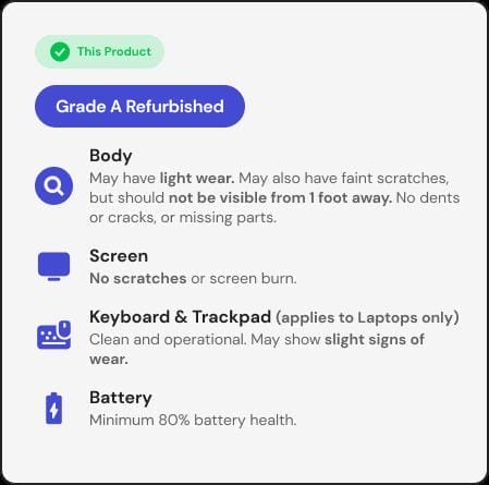 This product is listed with a Grade “A” rating. It arrives in a near-mint condition and may have very minimal to zero amounts of scuffing on the case. To learn more about refurbished products, click here.