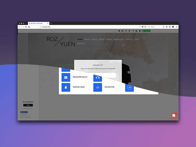Integrations with Facebook, Instagram, Soundcloud and YouTube