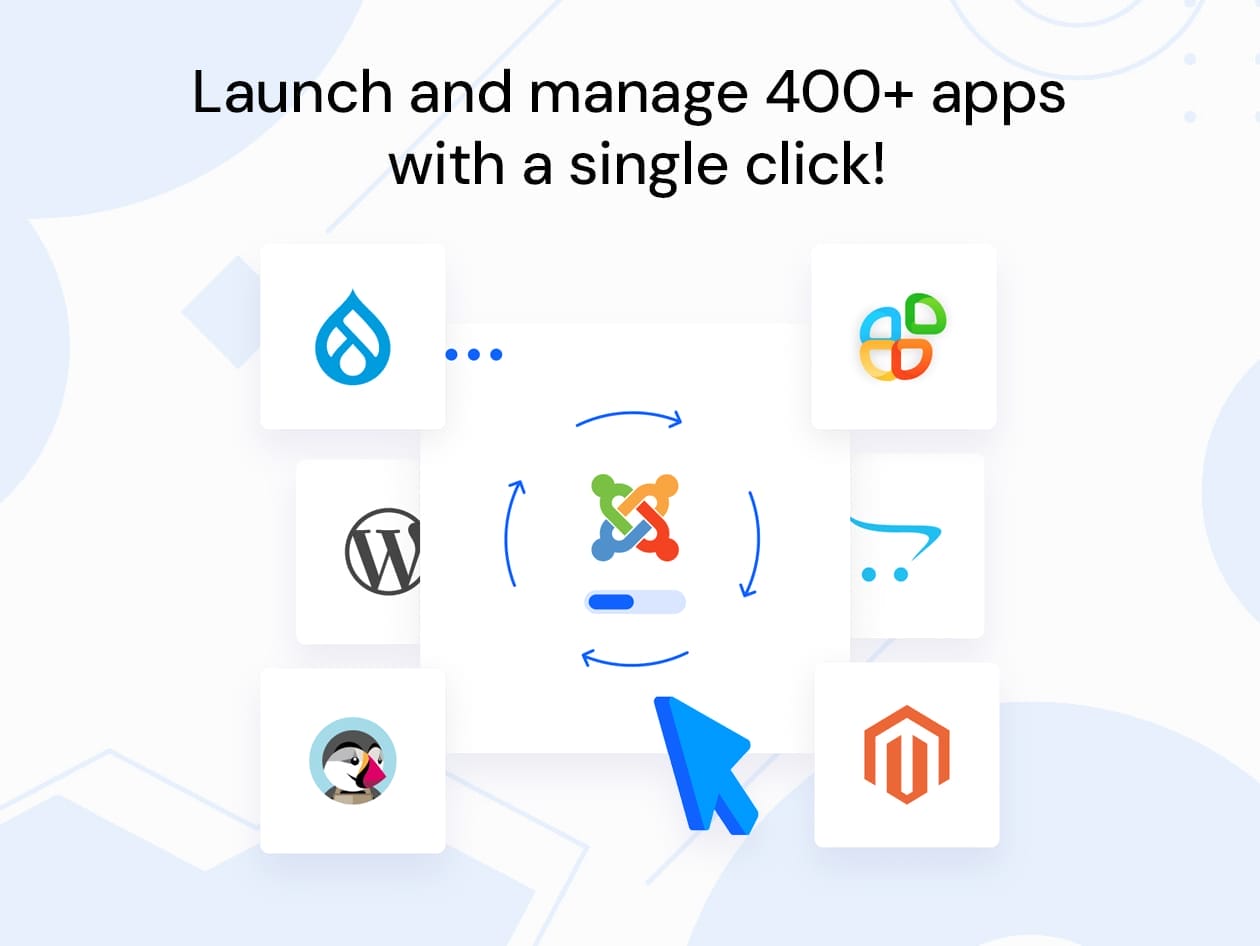 • One-Click Apps: Launch and manage over 400 apps like WordPress, Joomla, Drupal, Magento, and more with a single click.