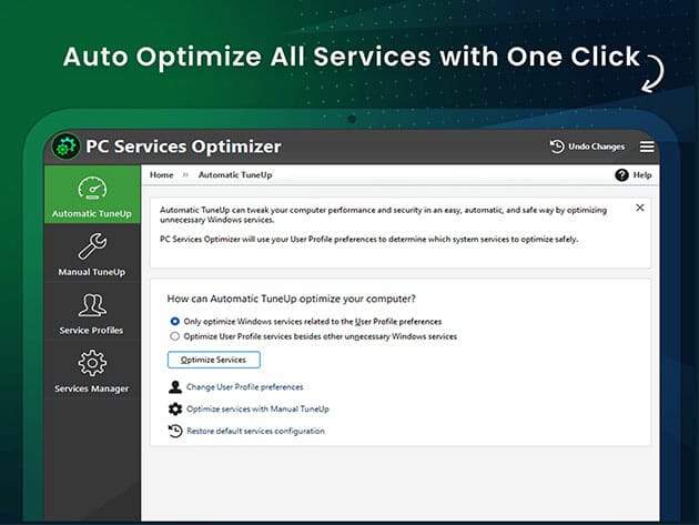 Besides automatic services tuneup that is great for novices, PC Services Optimizer also provides experienced users with advanced options to allow them to customize the services optimization process in addition to the optimization of more Windows services to achieve the best possible performance boost.