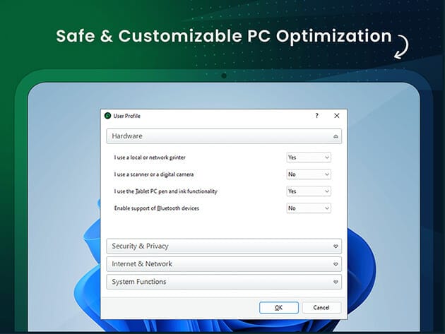 PC Services Optimizer makes it very easy for novices to optimize dozens of unnecessary Windows services without the need for extensive knowledge about how Windows services work. The services optimization process is automatic and based on how you use your computer so that it won’t affect the system’s normal operations.