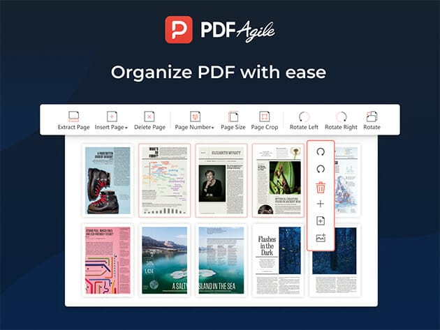 If you are fretful about the slow response in editing PDF documents, errors in converting, and limits in formatting, PDF Agile offers you a quality, affordable, and complete solution. As its name suggests, PDF Agile is flexible and fast, and its tools are easy to use. Efficient PDF editing is just a mouse click away. Not only does PDF Agile excel in desktop applications, but it also offers a high-quality online conversion solution to meet your needs.
