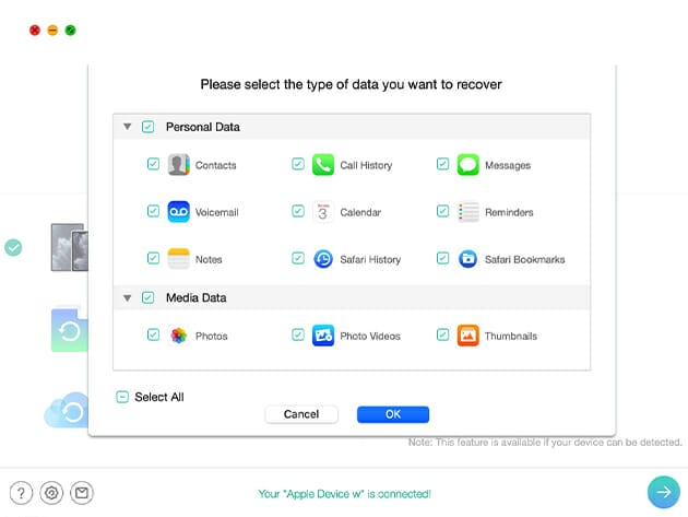 Recover as many as 25 types of daily used data; including photos, messages, contacts, notes, & more