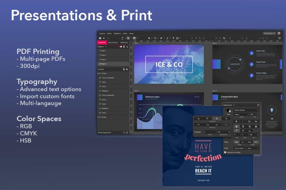 Gravit Designer PRO gives you the power to create and edit designs across platforms and devices (PC, Mac, Chromebook, Linux, tablets and mobile) with unlimited Cloud storage, so your designs will always be wherever you need them. Whether you’re working on graphics for marketing materials, websites, icons, UI design, presentations, or social media, Gravit Designer PRO gives you all the power, precision, and flexibility you need to unleash your creativity.