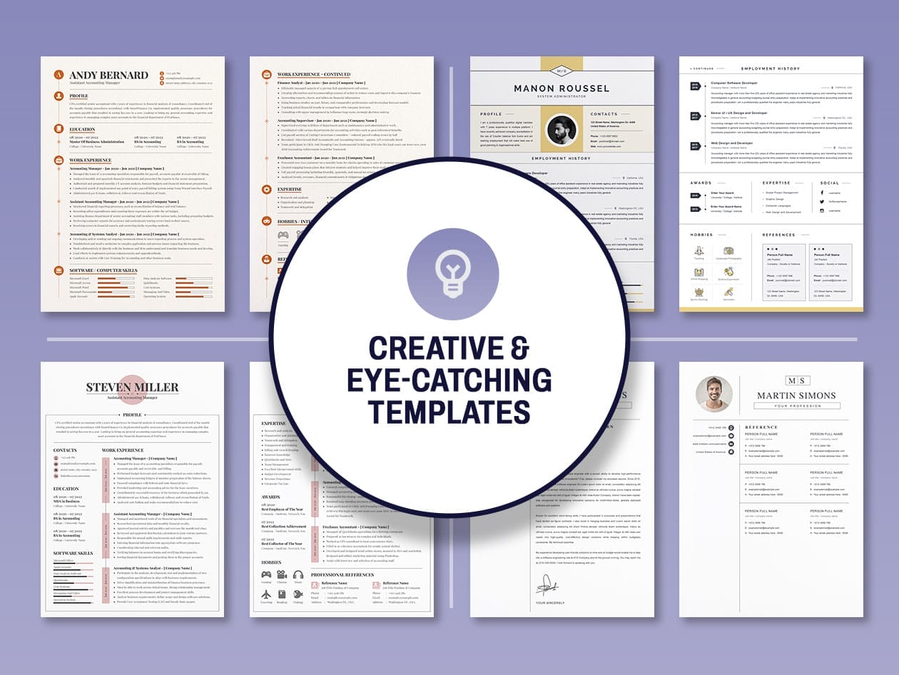 Creative Resumes: Feature eye-catching designs & layouts that will capture the attention of potential employers