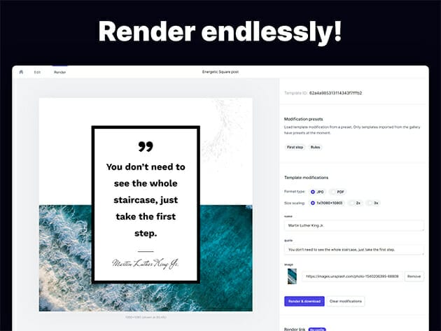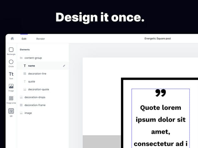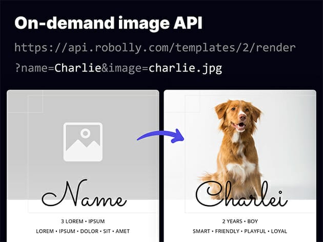 Robolly is perfect for mass-producing on-brand Instagram content, consistent-looking Youtube thumbnails, real estate banners, personalized PDF certificates, and more. On top of that, Robolly makes it possible to set up dynamic images thanks to the on-demand rendering capabilities (your secret to high click-through rate). It’s the complete solution for creating visuals based on a repeating design.