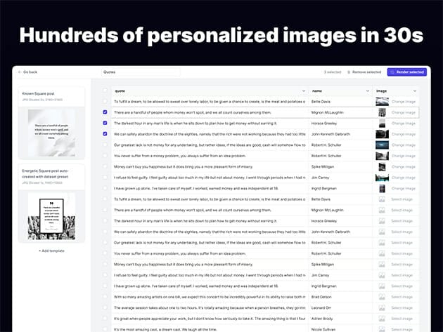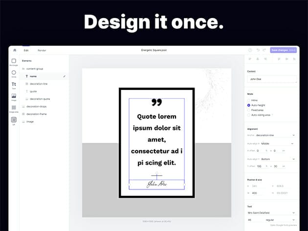 Robolly is an innovative graphic automation cloud service. It helps you personalize, streamline and scale your visual marketing – create thousands of personalized marketing images & PDFs in minutes.