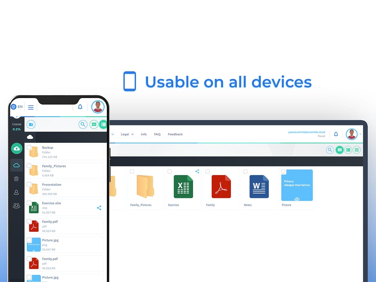 You can share links, stream videos, or view Word and Excel files directly in your browser. Scramble Cloud works easily across platforms and devices, ensuring your data stays private, permanent, and always within reach.