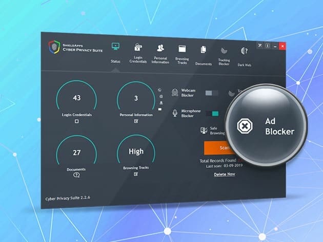 Did you know that your digital information and web behavior are being constantly monitored, logged and tracked every day? The gathered information is then being processed, sold, and used to monetize your web activity by various third parties. You can stop all that, however, with the ShieldApps Cyber Privacy Suite! Cyber Privacy Suite is a privacy enhancement software that monitors hundreds of micro-parameters on your device, exposing data that can endanger your identity. Stop being tracked by advertisers, hackers, and data miners and analyze your computer for exposed information today.