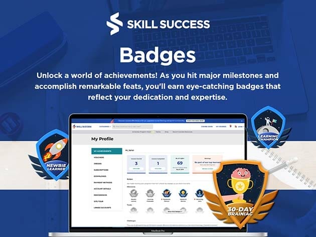 - Gamified Learning: Unlock cool badges as you learn a new skill
