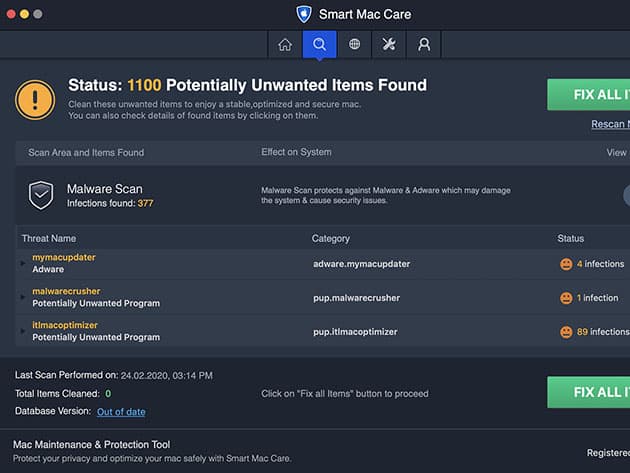 Is your Mac slowing down and laggy? You might want to free up some space and check if some malware is lurking in. Meet Smart Mac Care, the best tool to keep mac healthy and optimized with high protection and performance. This app offers 3 unique cleaning features. Malware Scan to keep your Mac protected from infections such as malware, adware, spyware, and more, Junk Scan for deleting unwanted files, and Privacy Scan to protect sensitive information. In addition to these big boys, Smart Mac Care has Advance Tools for even more efficient cleaning. All these collectively help boost system performance and recover considerable hard disk space.