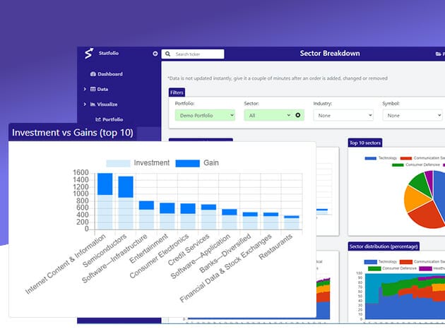Statfolio is a portfolio tracker for anyone who owns financial investments and wants to better understand how they are performing. It can be used by retail investors, accountants, professional investors, and portfolio managers. It’s focused on analytics and visualization. It can answer some important questions like “How did my investments perform over the past year?”, “Is my portfolio diversified enough?”, “What is happening with some individual sectors/industries of my investments right now?” and more.