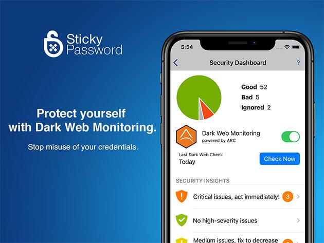Sticky Password automatically monitors your passwords against data breaches
