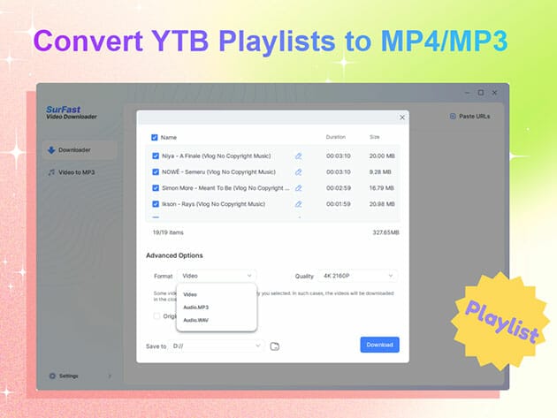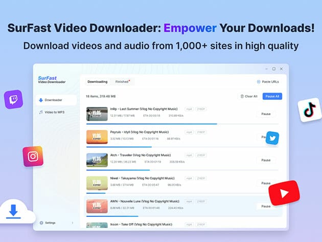 SurFast Video Downloader is a versatile and efficient video downloader that enables quick and secure downloading of videos and audio from over 1,000 popular streaming sites like YouTube, TikTok, Facebook, Twitter, and Instagram. As an 8K video downloader, it allows you to swiftly and securely download high-resolution videos from various online platforms, ensuring an ultimate visual experience.