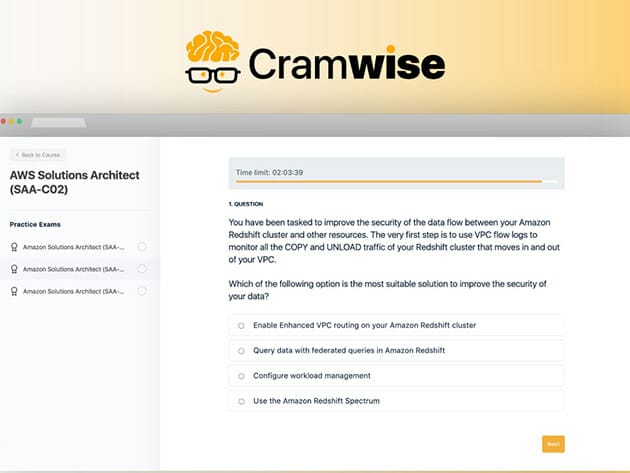 CramWise™ Practice Exams help students prepare for Cisco®, AWS®, CompTIA® certification exams. These comprehensive exam simulations are delivered via the exclusive CramWise Exam Environment™ — the premier exam delivery system which enables students to test their knowledge and gain confidence before taking the real exam.