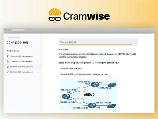 CramWise™ Practice Exams help students prepare for Cisco®, AWS®, CompTIA® certification exams. These comprehensive exam simulations are delivered via the exclusive CramWise Exam Environment™ — the premier exam delivery system which enables students to test their knowledge and gain confidence before taking the real exam.