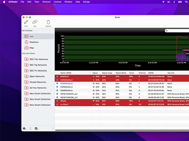 Finding a free WiFi network while on vacation can be a nightmare. Using advanced GPS technology, AirRadar scans and places all networks on a map. While walking or driving, AirRadar automatically updates networks’ location when it finds a better signal elsewhere. Open networks are clearly marked with a green dot and closed networks with a red dot. Throw the laptop on the passenger seat before leaving the house for the day, and after a day of driving, have a comprehensive map of open networks!