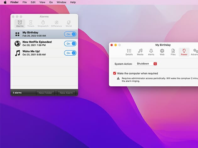 Wake Mac from sleep. Wake the Mac from sleep on-demand for scheduled alarms (NOT available for Windows version)