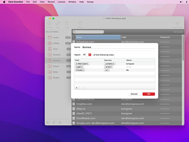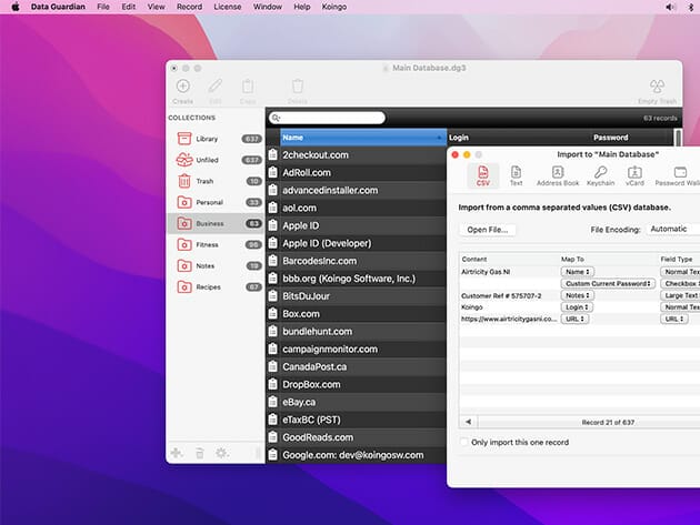 Leaving post-it notes attached to your monitor to remember passwords is a major security risk! In a world plagued by privacy concerns, trust in Data Guardian’s 448-bit strong Blowfish encryption to keep your mind at ease! The flexible and intuitive design of Data Guardian makes entering a wide range of data a breeze. Every record in databases can be custom-tailored to suit the type of information entered: address books, passwords, credit card numbers, shopping lists, or even journal entries!