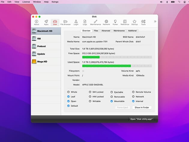With the power of UNIX and the simplicity of Macintosh, your Mac is a high-tech wellspring of untapped power! Use MacPilot to unlock over 1,200 features and access them all with the easy and familiar Macintosh user interface—no command line tools or complicated file operations required! With MacPilot, you can display hidden files in Finder, disable the startup chime, add spacers and stacks to the Dock, change the screenshot file format, run maintenance tools, and so much more. With MacPIlot, you can step out of the passenger seat of your Mac, get behind the wheel, and take real control over your computer.