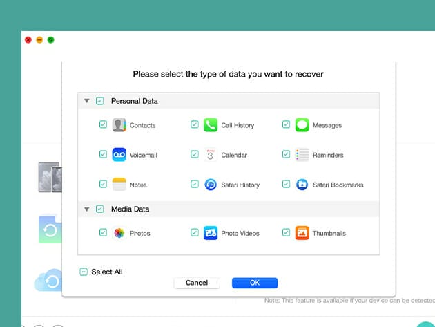 Recover as many as 25 types of daily used data; including photos, messages, contacts, notes, & more