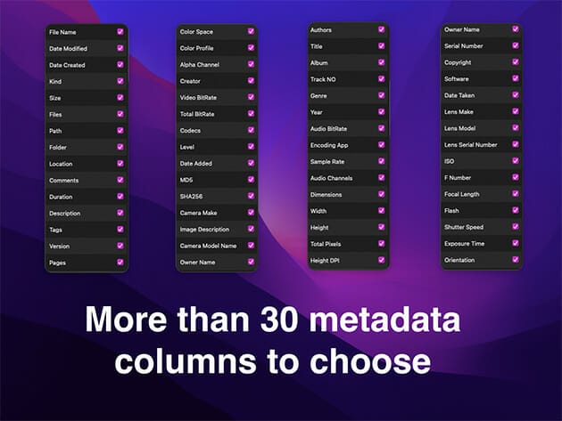 Customization. Set the metadata columns that want to view & to be exported