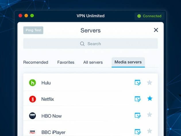 • Access servers for US Netflix, BBC iPlayer, Hulu, ESPN+ & HBO Now