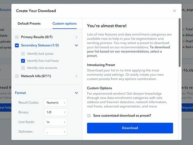 Puzzling over why your email campaign fails because of the bounced emails might be a tough task, but few realize that the reason is simple – the emails in the list might be old, fake or abandoned. To solve this issue is easier than you may think – by quick verifying the list with TrueMail before starting the email campaign. TrueMail verifies each email address in the list in real-time and gives you the status for each email: valid, invalid, unverifiable, disposable, unknown. Unlike usual email checkers, TrueMail is more accurate and is designed with user-friendly software, great for non-technical users.