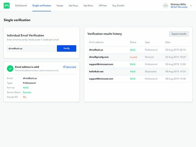 • Validates emails of all types, from small to large businesses, & all major providers from anywhere in the world