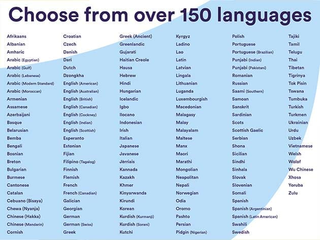 Each user can choose one of 150+ languages (see Important Details for full list) to learn from any device, any time you want