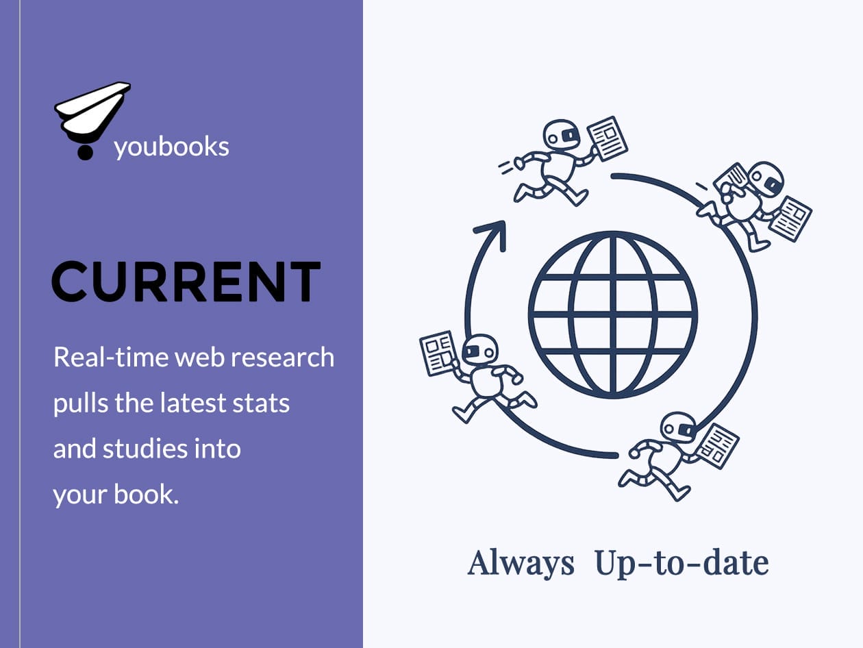 • Built-in Internet Research: Youbooks performs real-time web searches during composition, integrating up-to-date facts, statistics, and news to ensure your content is current and accurate.