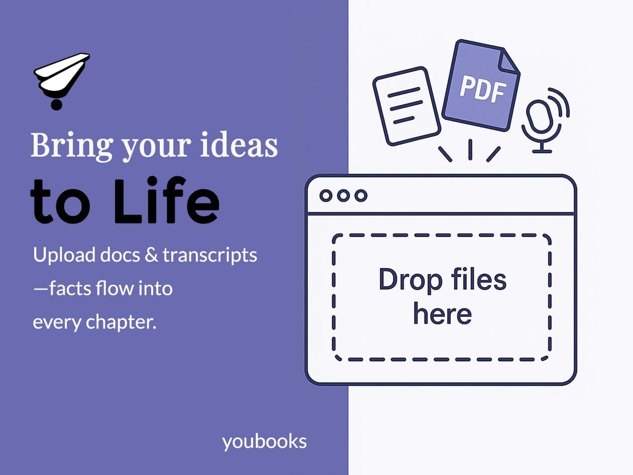 • Incorporate Personal Research: Upload your own documents, transcripts, or memos to guide the AI, grounding your book in factual information.